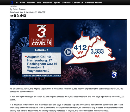 - America's Firstborn Colony and Tenth state: https://virginiabusiness.com/virginia-coronavirus-cases-3333-as-of-tuesday-a-nearly-16-increase-in-24-hours/